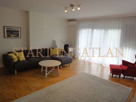 105 sqm flat for rent on upper ground floor in a 6-flat house, built in 1986. The apartment consists of a living room, a large terrace, an equipped eat-in-kitchen, 3 bedrooms, 1 bathroom and 1 shower. It is furnished, has A/C, the common cost with water consumption is 35.000 HUF/month. Garage for 2 cars belong to it. No pets!