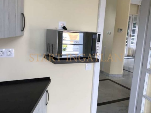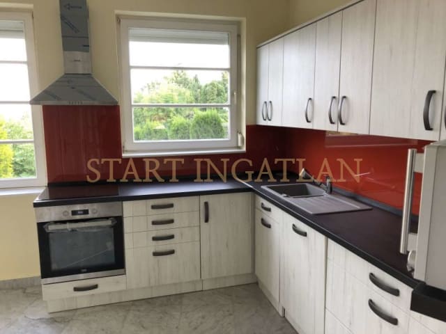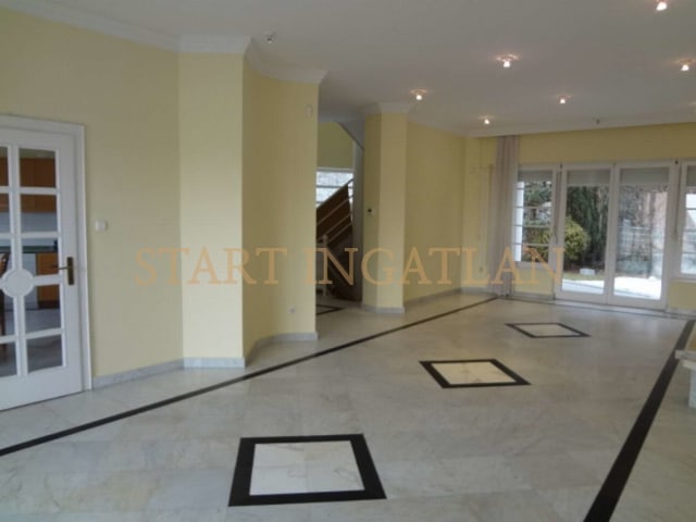 SUITABLE FOR 2 FAMILIES AS WELL! 300 sqm 3-storey semi-det. house, built in 1993, in a separated garden is for rent. Garage for 2 cars, heating system, laundry room, fitness room and a shower with toilet are in the basement. There are garden access from 2 terraces on the ground floor, which consists of 50 sqm living room (air-conditioning) with balcony, and 1 separated kitchen dining area, guest toilet. On the 1st floor there are 3 bedrooms with balconies, a walk-in closet, 1 bathroom (bathtub, shower, 2 wash basins) and 1 separated toilet. 2 bedrooms have air-conditioning. The house is unfurnished, equipped with alarm system. There is washing machine and dryer at the garage level. Pets are invited!