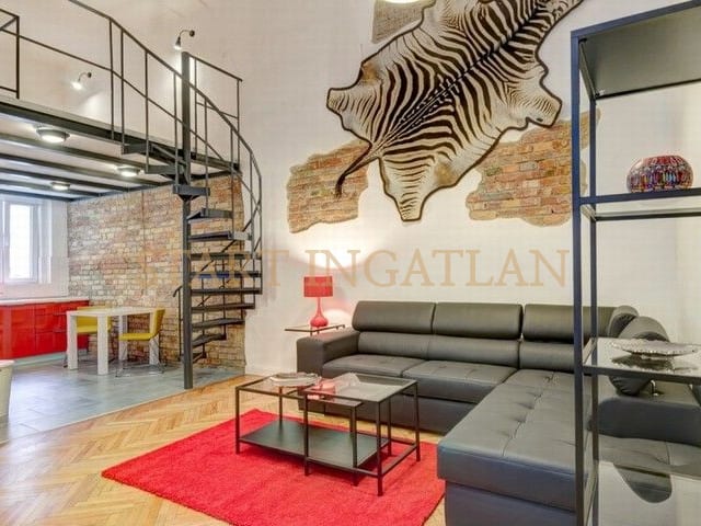 LOFT-type 70 sqm luxurious flat for rent on 1st floor (elevator) in a nice building. Lower level: large living room with open-plan kitchen and dining area, 1 bedroom with bathroom. Gallery: 1 bedroom, 1 shower with toilet, walk-in closet. The kitchen is equipped, there are modern, up-to-date furniture, unique atmosphere. Common cost: 17.000 HUF/month.