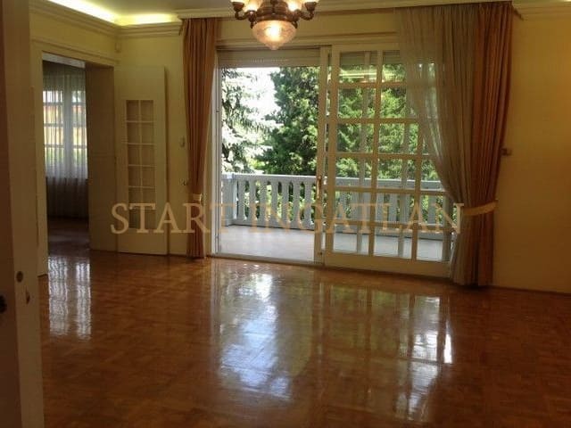 350 sqm 4-storey semi-det. house for rent, built in 2000, in 500 sqm garden. Basement: 40 sqm hobby room, sauna, jacuzzi, bathroom, toilet, garden access. Groundfloor: living room, study, kitchen, dining room, toilet, large terrace. 1st floor: 3 bedrooms, closet, bathroom, terrace, panoramic view. 50 sqm attic in one air-space, 1 bathroom, closet. There are alarm system, inlaid parquet and cold flooring, video gatephone, aut. watering system. The house is available without furniture or furnished, garage for 2 cars belongs to it. Pets are OK! Photo! Floor-plan!